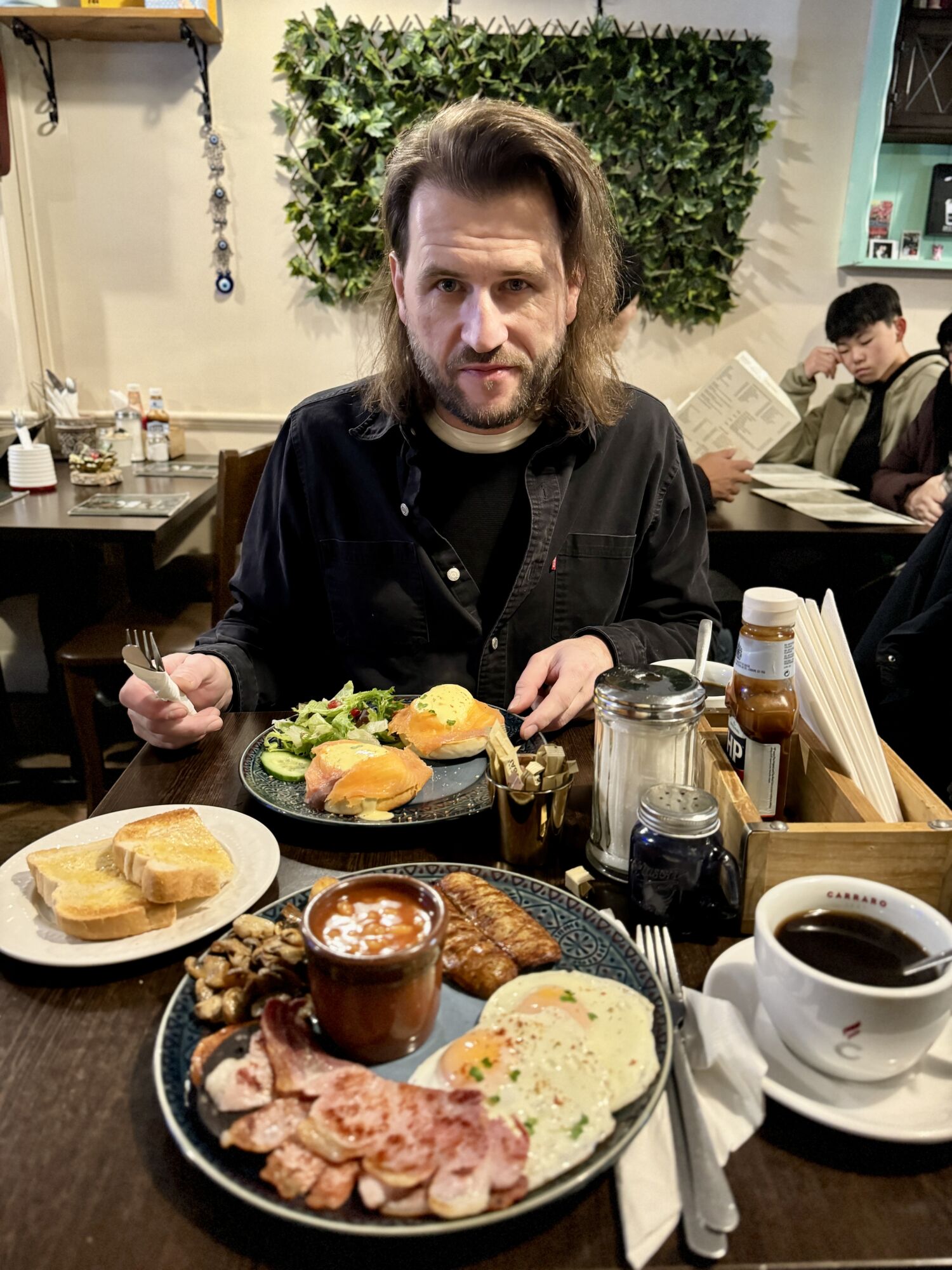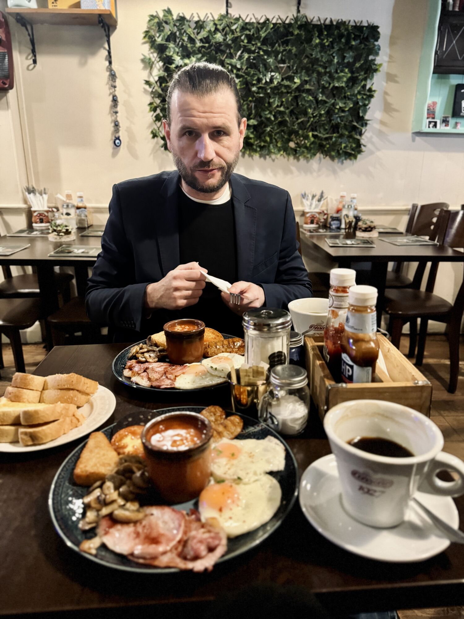 Ráno jsme si chtěli doplatit hotelovou snídani, ale překvapivě začínala až v 7.30 ráno – a to jsme věděli, že nestíháme sedět na našem touženém spoji Stansted Expressu směr letiště. Myslela jsem si, že teda budeme o toustu z Tesca (jsou tu na každém rohu a mají super sváče za pusu), ale Nora Café překvapilo! Otevírali totiž už v 6 ráno. Moc jsme tomu nevěřili, ale byl to fakt. Snídali jsme tam my a popeláři 🙂 Takže náš jednodenní intenzivní Londýn jsme začínali i končili pravou anglickou snídaní.
