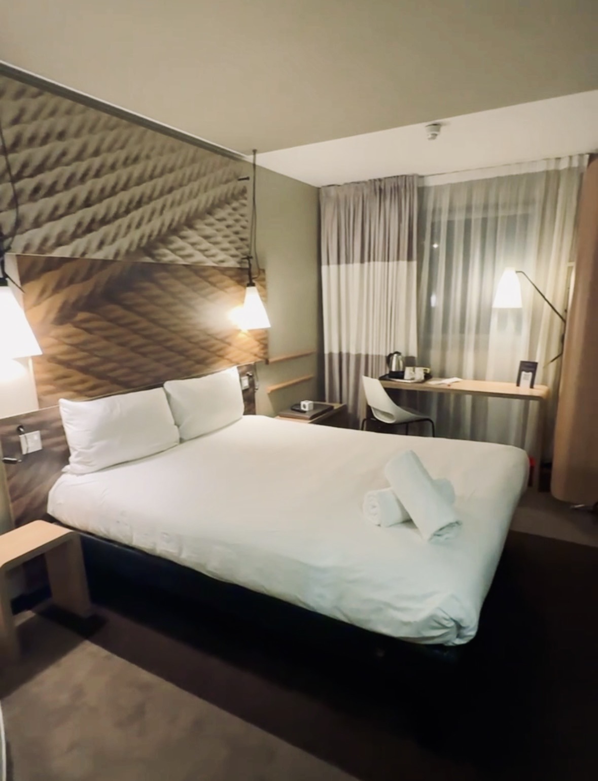 Podle nočního příletu jsme museli zařídit ubytování. Nejčastěji vybírám AirBnB u místních, nicméně tady hrála roli možnost check-inu 24/7 a docházková vzdálenost od stanice Liverpool street station, kde zastavoval rychlovlak z letiště. Ještě s ohledem na příjemnou cenu tak padla volba na tuto pobočku hotelu Ibis. (Při naší poslední cestě do Londýna přesně tímto stejným leteckým nočním spojem jsme totiž nabrali 2,5h zpoždění a pán ze soukromého ubytování na nás chudák čekal do půl třetí ráno, to už jsme nechtěli znovu podstupovat). Pokojíček byl úplně v pohodě, měli jsme to bez stravy – rádi po cestě objevujeme lokální spoty k občerstvení 🙂