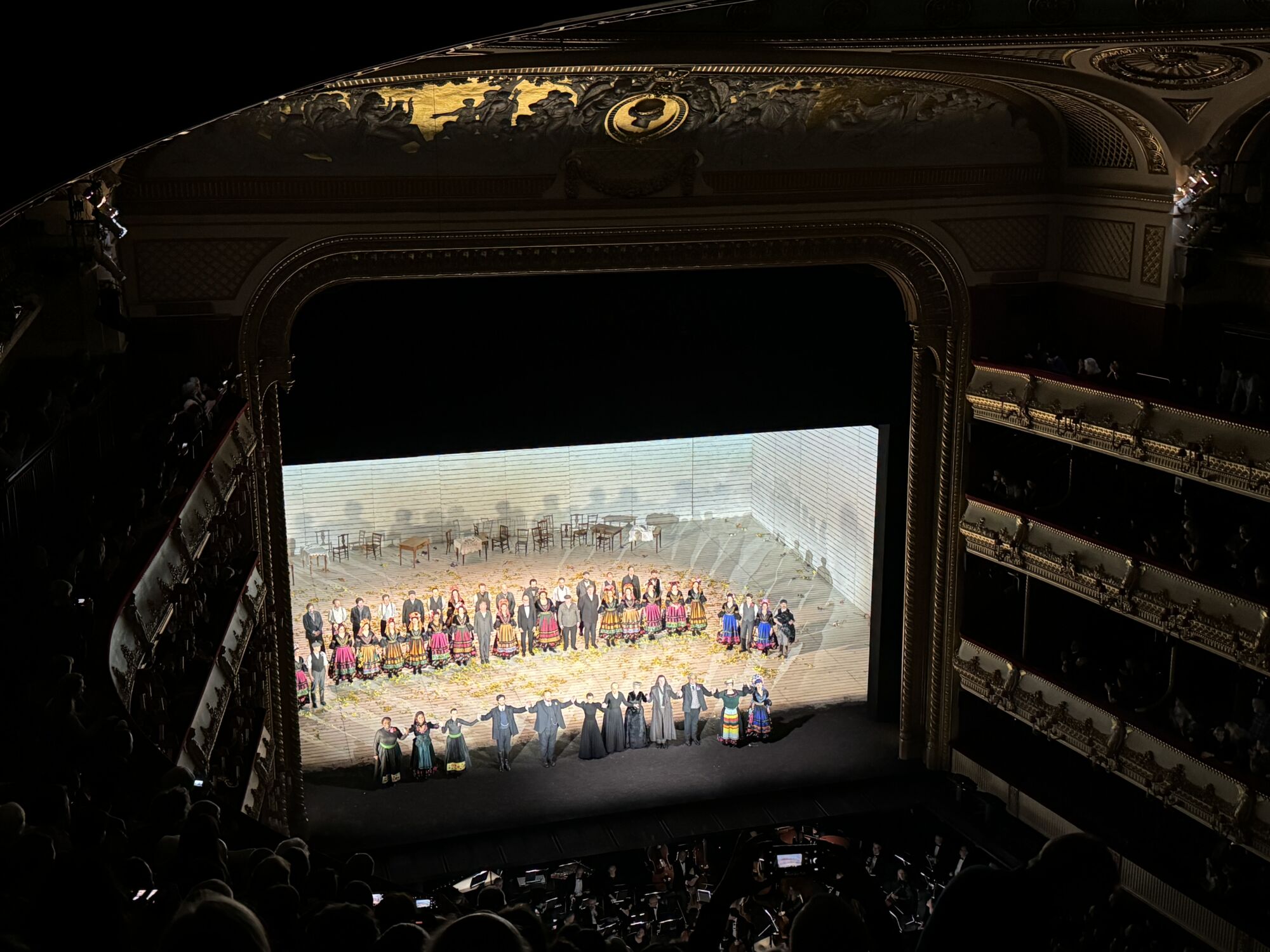 Ceny vstupenek se však pohybovaly, stejně jako mé nadšení, doslova v nadpozemských výšinách, a podle toho taky dopadl výběr našich sedadel – seděli jsme opravdu hodně nahoře a daleko, i tak zaplatili totální super ranec, nicméně zážitek to byl sám o sobě krásný a stálo nám to za to. Ale zhodnotili jsme, že Janáčkova opera v Brně je tedy architektonicky mnohem větší zážitek, než ta londýnská 🙂