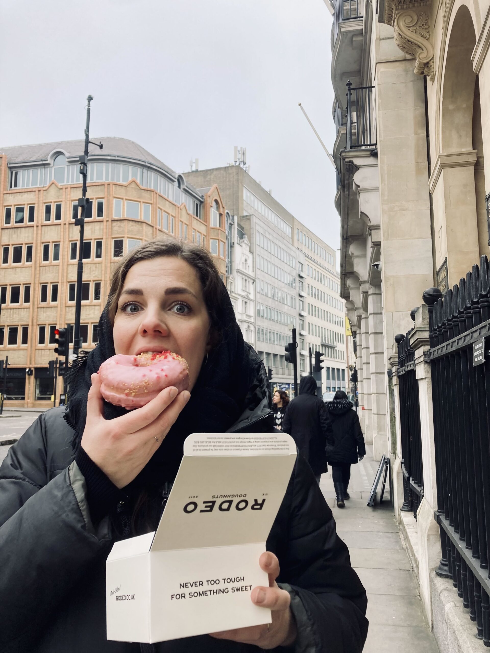 Po cestě jsem si dala svačinkovej donut, kde mě překvapilo, že bylo doslova nutné platit kartou a nešlo to vůbec hotově (měla jsem nějaké zbytečky liber na útratu).